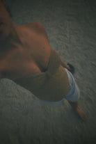 Vores One Size badetøj er lavet med omhu og begynder sin rejse som materiale vævet ind i et rør, før det bliver syet til badetøj. Denne metode gør slutproduktet alsidigt nok til at passe til størrelserne 32-42. Den er designet specielt til at tilpasse sig problemfrit til alle kroppe. Uanset om det er et spørgsmål om størrelse, pasform eller de skiftende former hos gravide og efter fødslen, takket være dets bemærkelsesværdigt fleksible materiale.